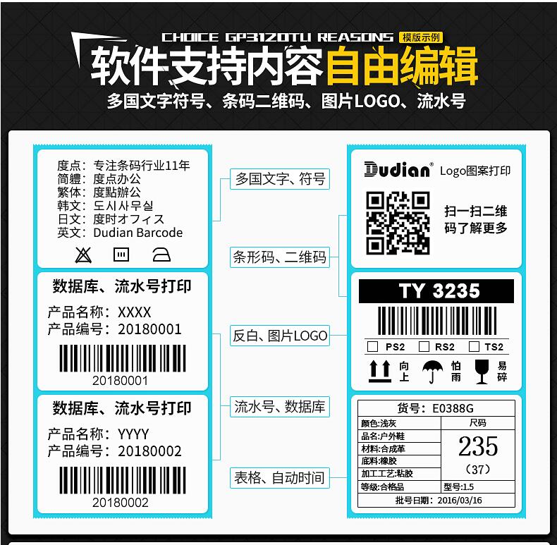 佳博GP3120TU熱敏條碼打印機 不干膠標簽機服裝吊牌價格貼紙 超市收銀奶茶手機藍牙二維碼商食品面包月餅倉庫